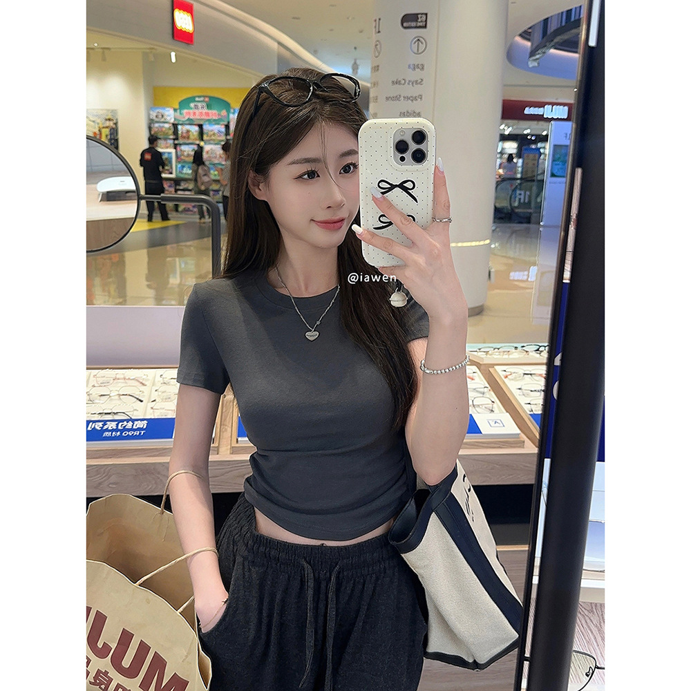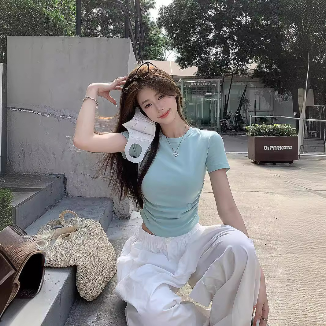 | nameOriginal | Sweet Spice Mint Green Shoulder Short-sleeved T-shirt Women's Design Pleated Slim-fit Slim-fit Short Top |