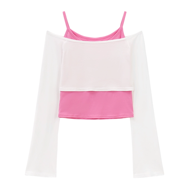 | nameOriginal | Sweet, spicy and pure one-shoulder pink plaid long-sleeved T-shirt |