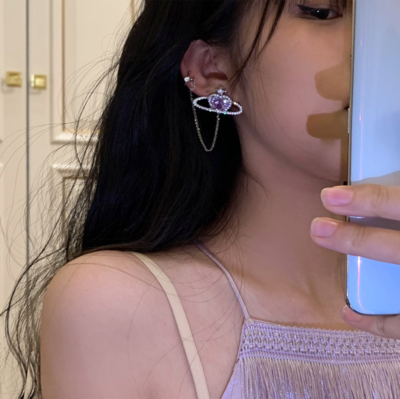| nameOriginal | Sweet spicy purple Saturn zircon ear bone clip earrings flash Diamond Girl fairy European and American sweet cool autumn and winter trendy temperament |