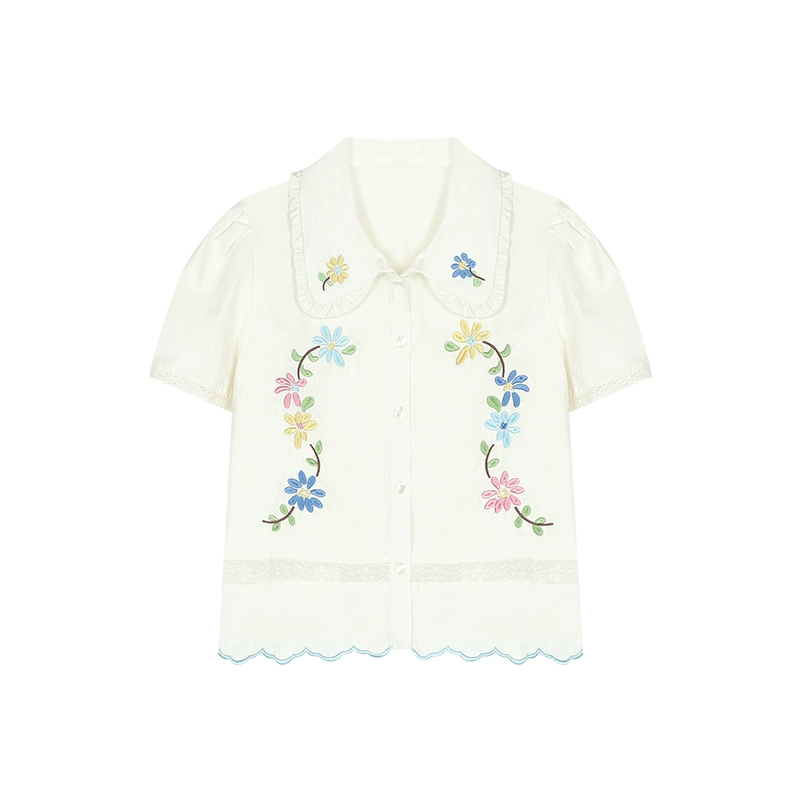 | nameOriginal | Sweet style heavy industry short-sleeved shirt with A-line flower embroidery |