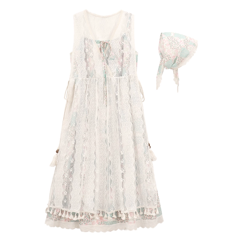 | nameOriginal | Sweet style mesh blouse dress headscarf floral suspenders |