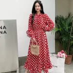 | nameOriginal | Sweet summer style ribbon bow on neckline, romantic retro polka dots, elastic waist dress |