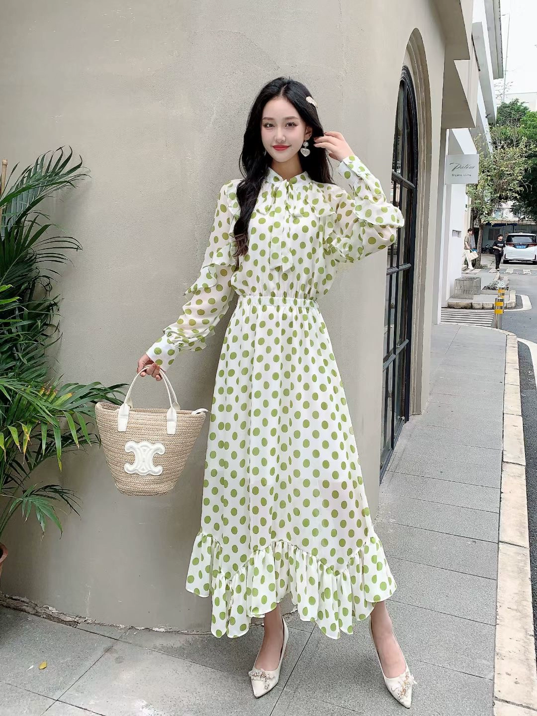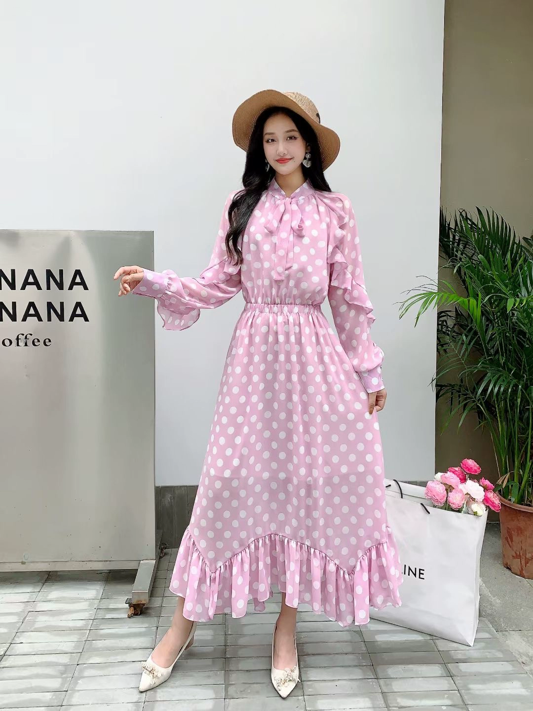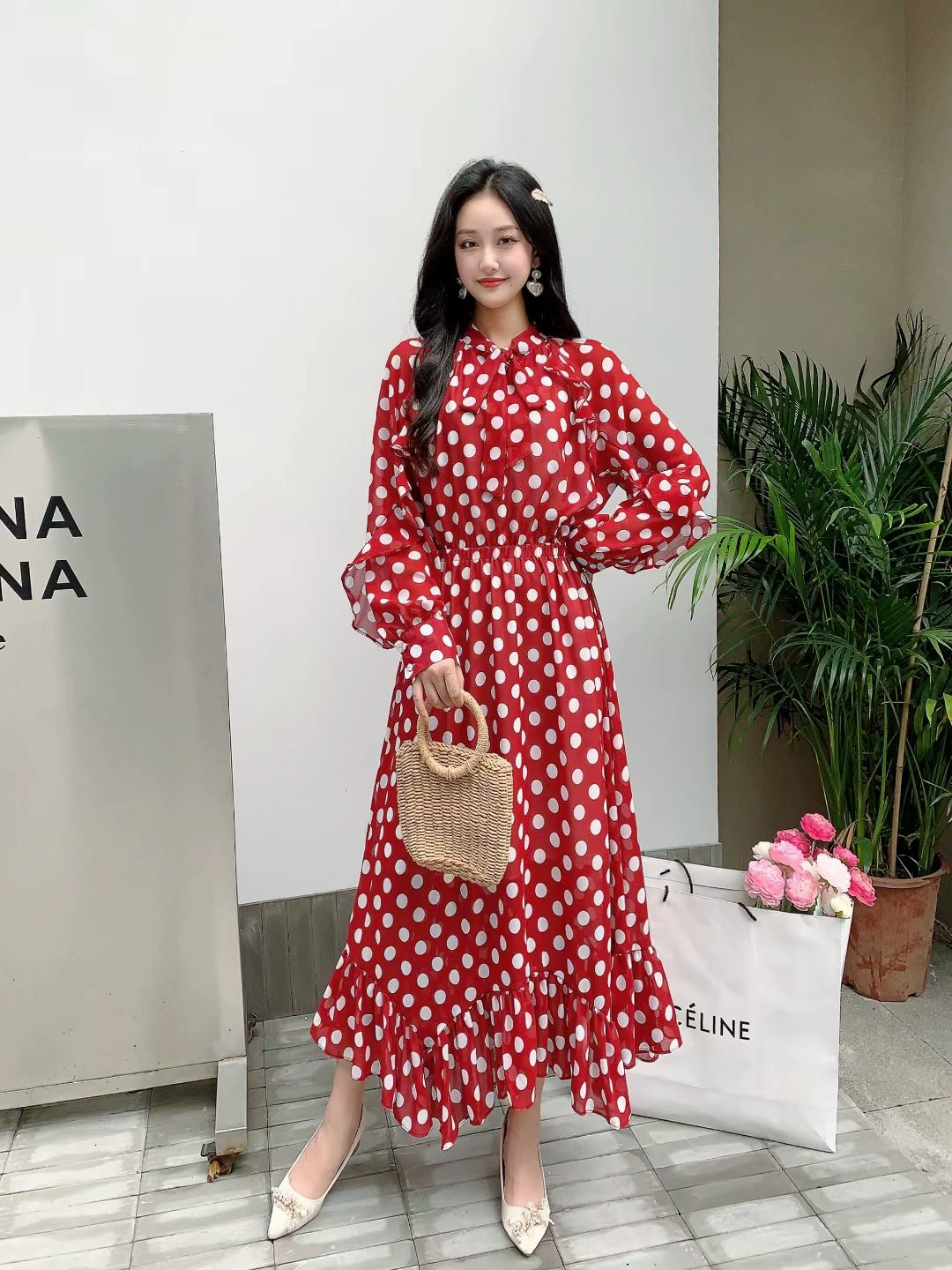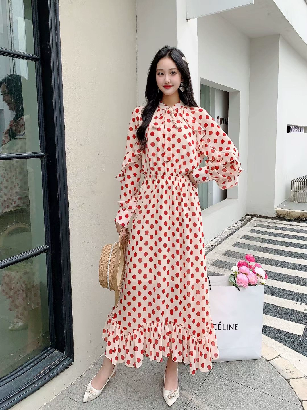 | nameOriginal | Sweet summer style ribbon bow on neckline, romantic retro polka dots, elastic waist dress |