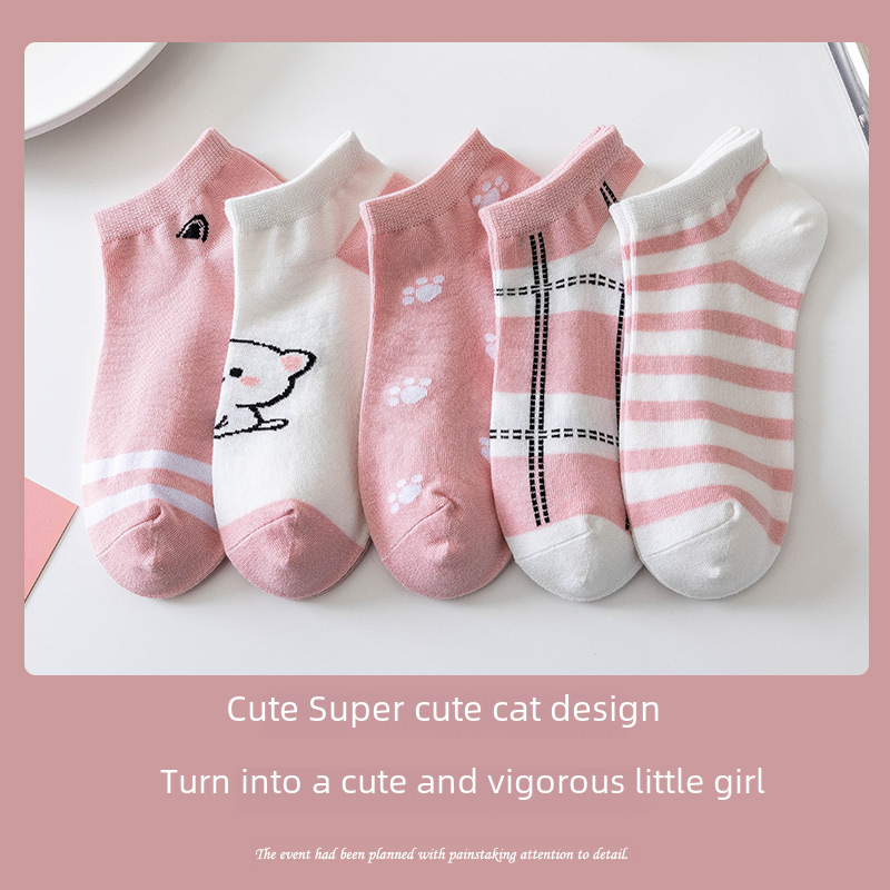 | nameOriginal | Sweet women's socks cartoon cute kitten socks spring and summer versatile fortune cat student girl socks pink college style |