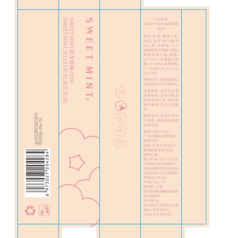 | nameOriginal | SWEETMINT lip frozen lip glaze brightening complexion moisturizing moisturizing lip easy to color non-stick cup glass mirror feeling |