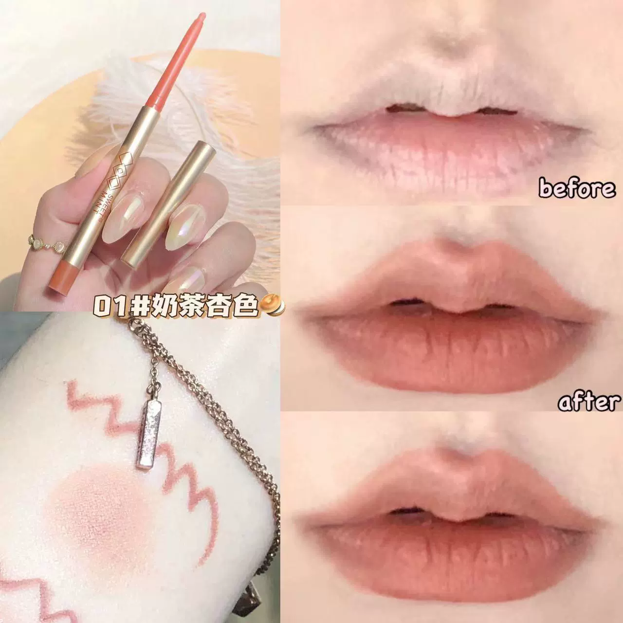 | nameOriginal | SWEETMINT lip liner outlines the lip shape, creates plump lips, and holds the color without fading or staining. |