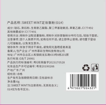 | nameOriginal | SWEETMINT makeup powder is durable and not easy to take off makeup Chinese brand oil control natural makeup powder cake Universal |