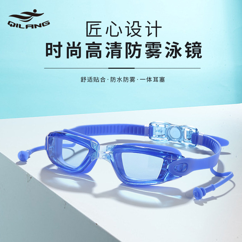 Swimming goggles earplugs integrated adult large frame HD waterproof professional anti-fog swimming goggles men and women goggles wholesale