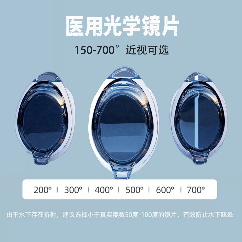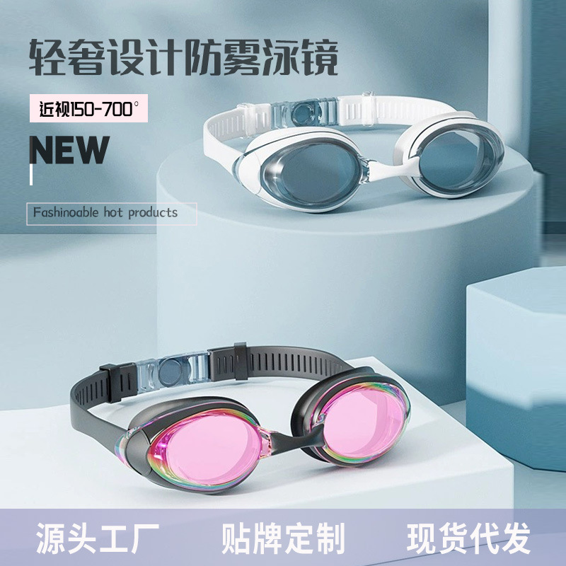 Swimming goggles ladies anti-fog HD adult swimming glasses with degree silicone waterproof small frame professional myopia goggles