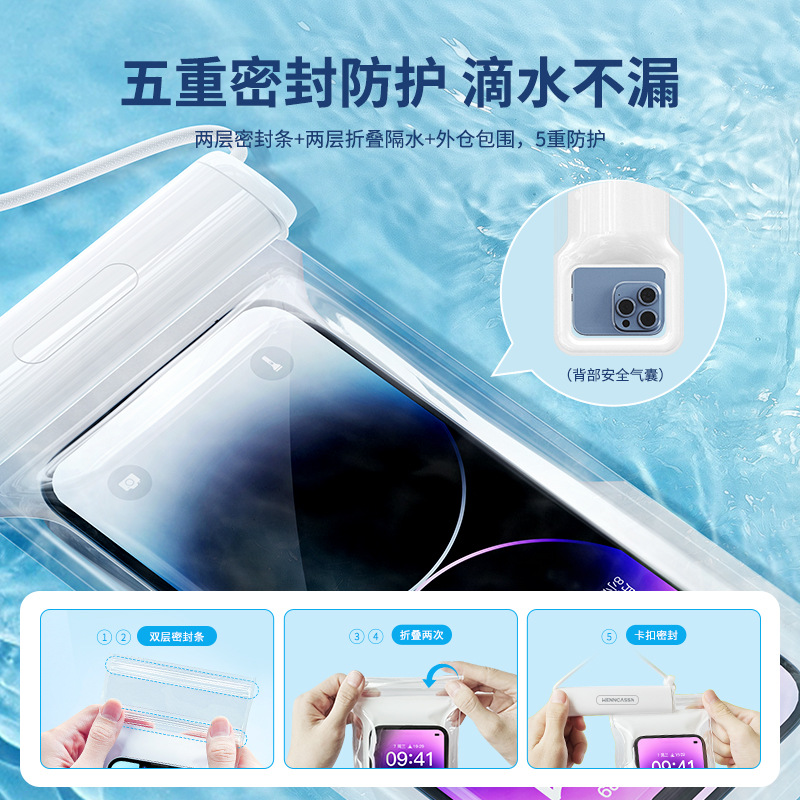 | nameOriginal | Swimming mobile phone waterproof bag airbag touch screen underwater photo sealing lanyard hanging neck drifting diving mobile phone case |