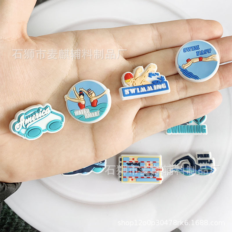 Swimming sports shoes flower decorative buckle hole shoes accessories wholesale pvc soft rubber detachable hole shoes flower shoe buckle