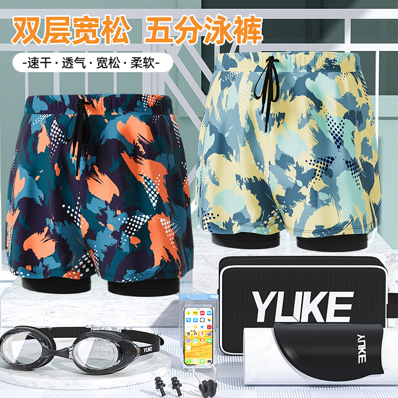 Swimming trunks men's quick-drying anti-embarrassment beach swimming cap swimming goggles three-piece set professional men's swimsuit swimming equipment full set