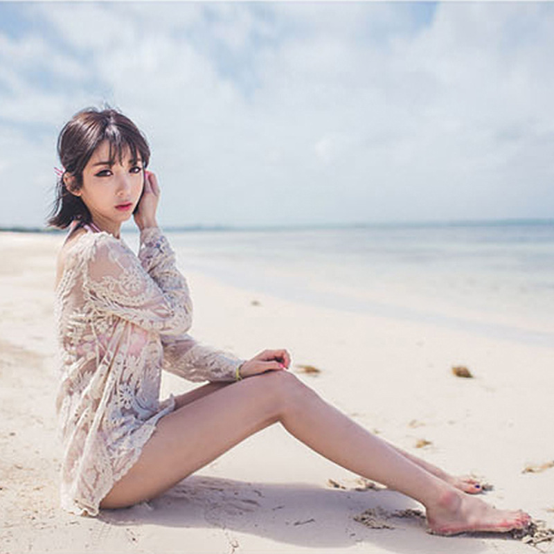 Swimsuit outdoor blouse can be washed Bikini Hot Spring Beach seaside vacation sun protection Women's lace Hollow Cross