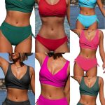 Swimsuit split bikini solid color cross strap Amazon popular high waist swimsuit European and American Foreign trade sexy biki