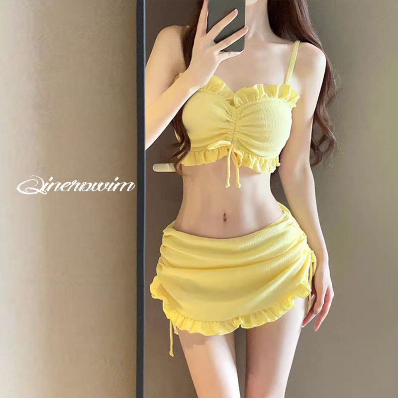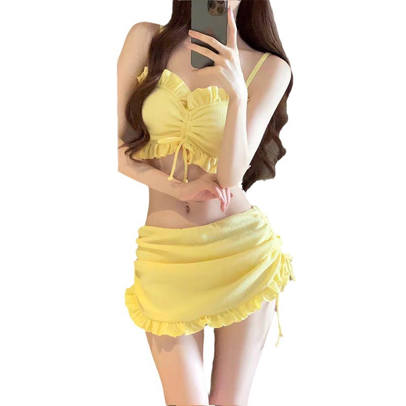 | nameOriginal | Swimsuit Women's Split Three-piece Solid Color Bikini Small Fresh Sweet Girl Slim Beach Hot Spring Swimsuit |