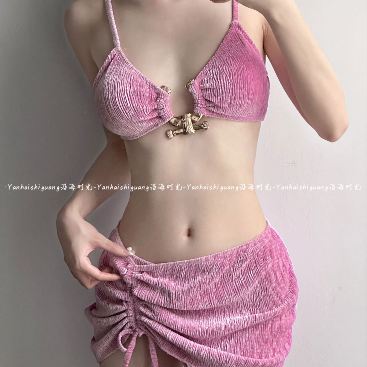 | nameOriginal | Swimsuit Women's Velvet European and American Ins Style Bikini Three-Piece Briefs High Waist Skirt Sexy Split Holiday Beach |