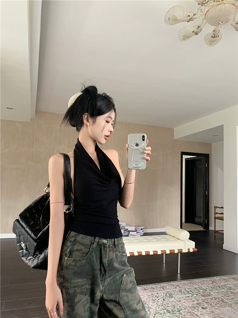 | nameOriginal | Swing collar slim fit black sleeveless backless halter neck strap |