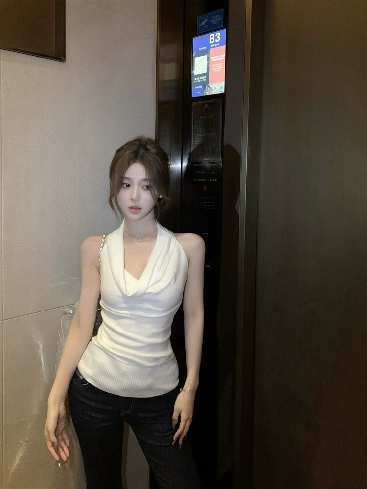 | nameOriginal | Swing collar slim fit white sleeveless backless halter neck strap |