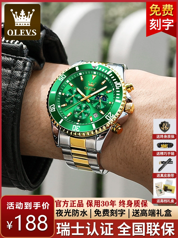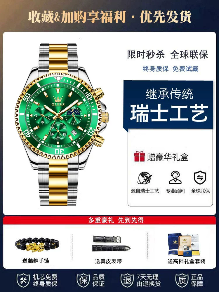 | nameOriginal | Swiss genuine famous brand Green Water Ghost men's watch mechanical watch Black Water Ghost waterproof luminous business brand top ten |