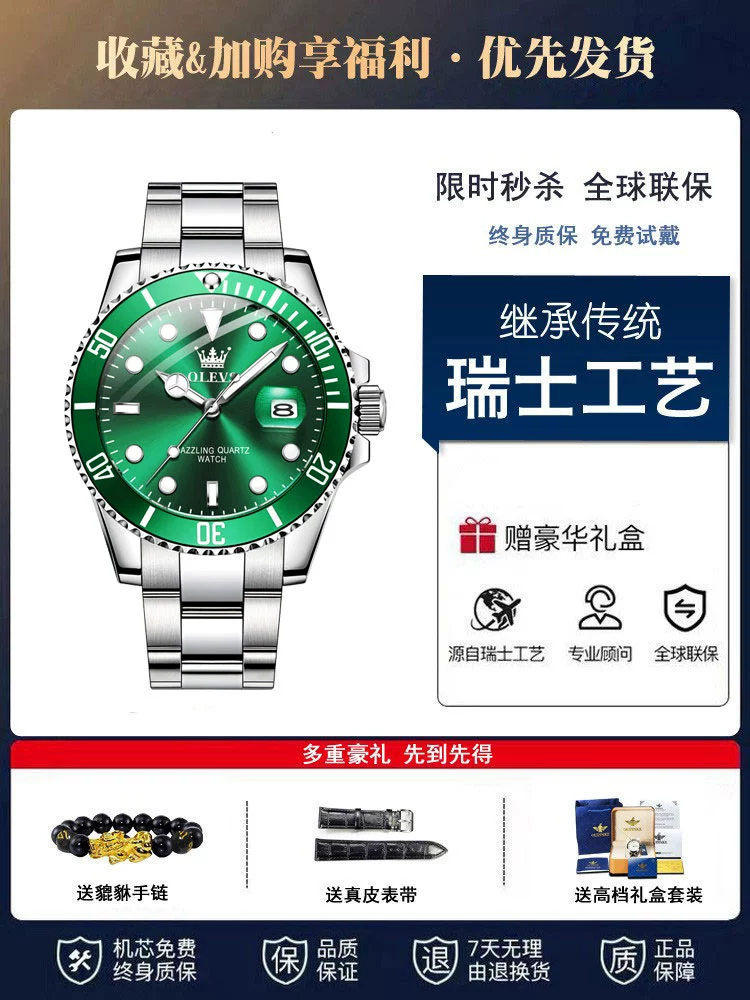 | nameOriginal | Swiss genuine famous brand green water ghost watch men's mechanical watch fully automatic black water ghost waterproof monster diving brand top ten |