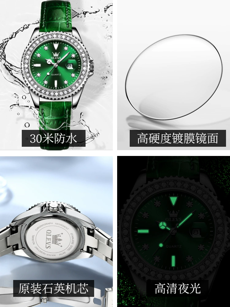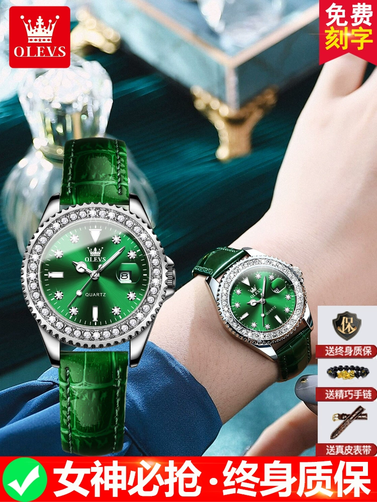 | nameOriginal | Swiss genuine famous brand Green Water Ghost watch women's mechanical watch genuine belt retro small green watch top ten women's brands |