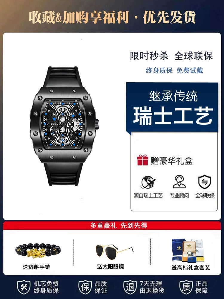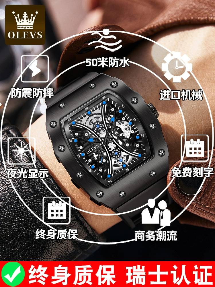 | nameOriginal | Swiss genuine famous brand men's watch men's mechanical watch barrel-shaped fully automatic sports hollow trend brand top ten |