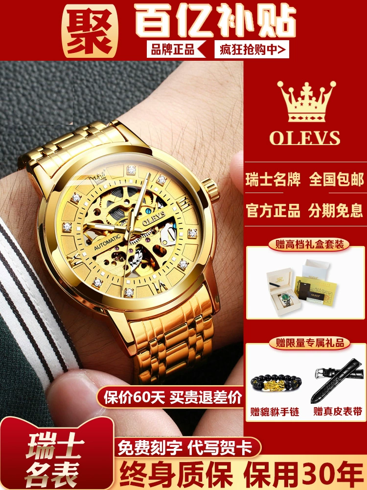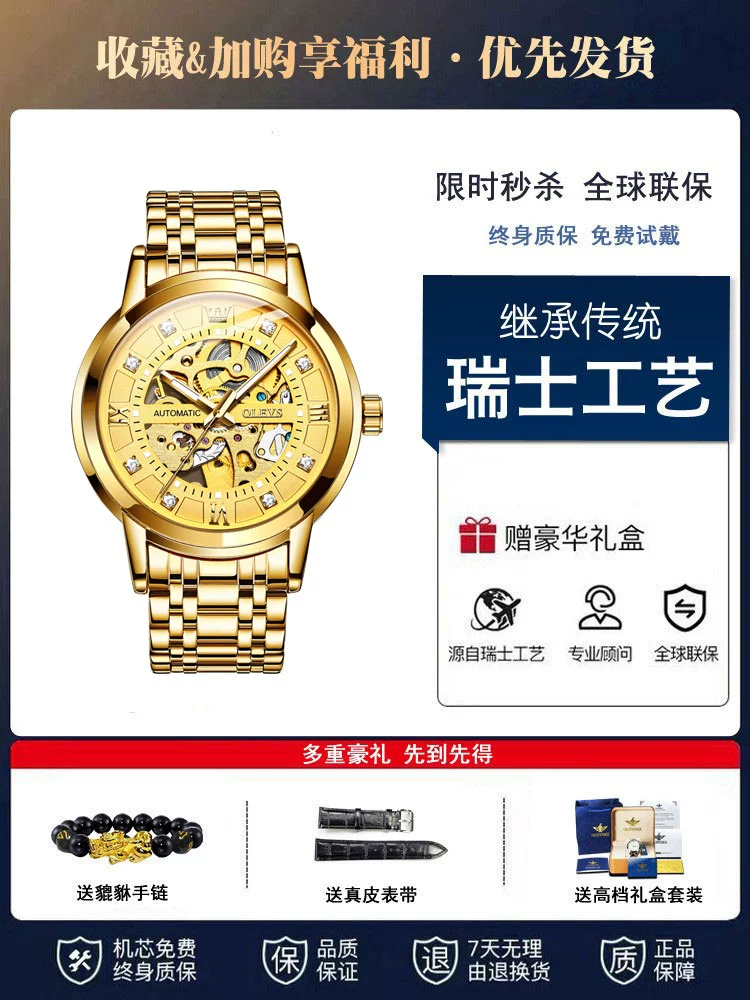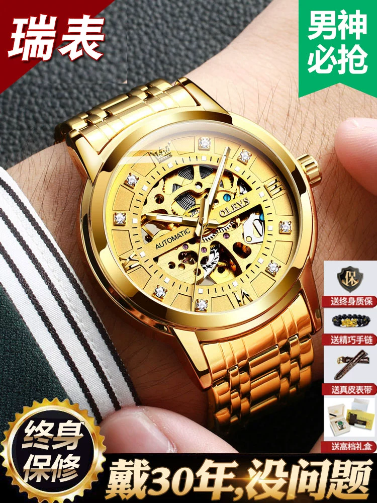 Swiss genuine famous brand watch men’s 18k gold mechanical watch men’s fully automatic tourbillon hollow brand top ten