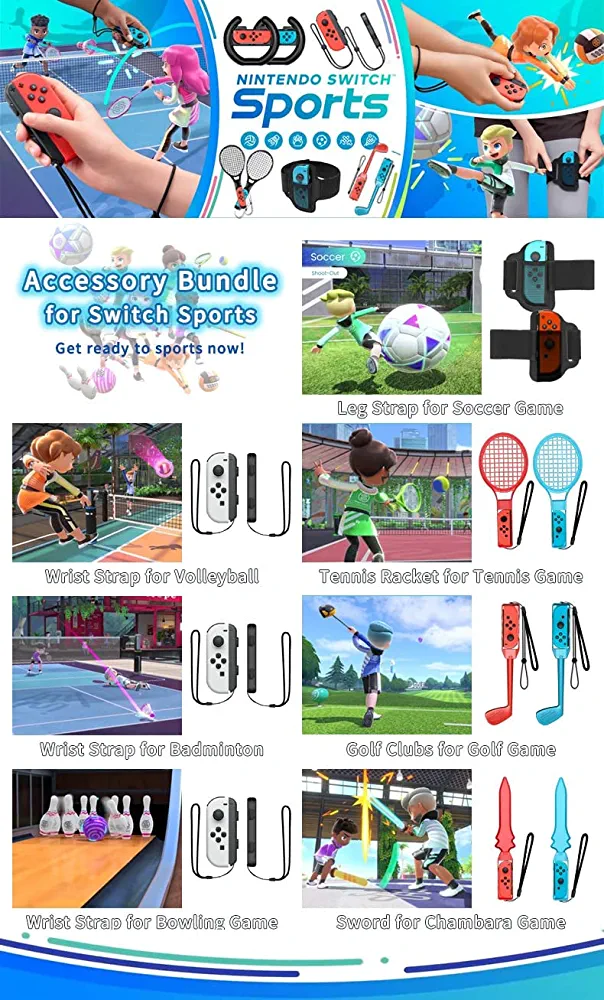 The hand strap and leg strap provide a secure and comfortable fit, allowing you to move freely while playing. The golf clubs and badminton rackets are designed to mimic the real thing, providing a realistic and immersive gaming experience. The sword adds an extra level of excitement to adventure games, while the variety of accessories ensures that you never get bored.
