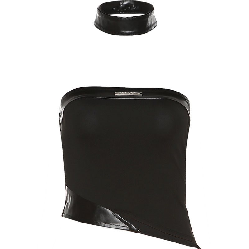 | nameOriginal | SylCue Spice Girl Style PU Leather Stitching Strapless Vest Women's Irregular Short Backless Sexy Cool Top |