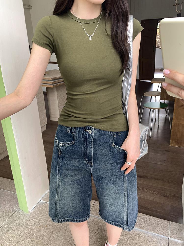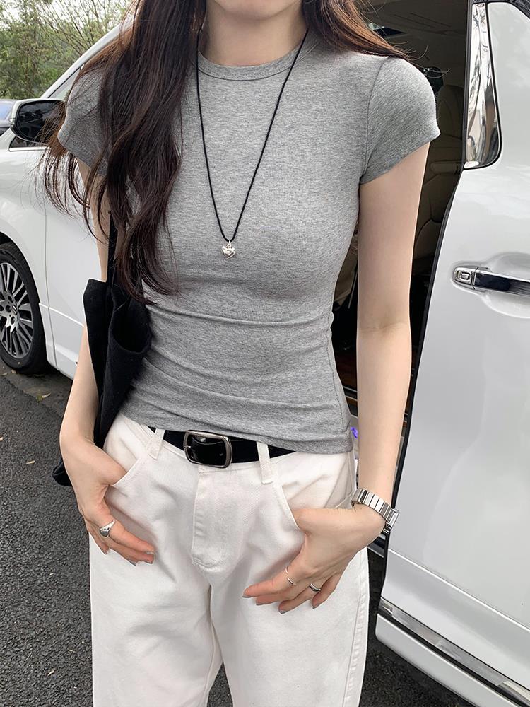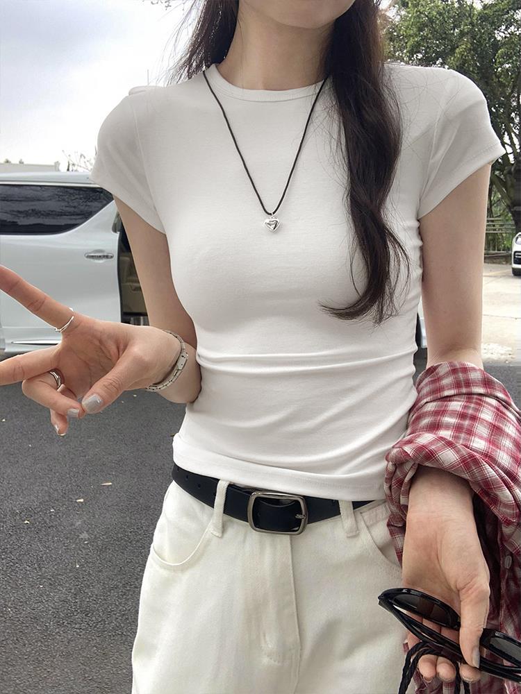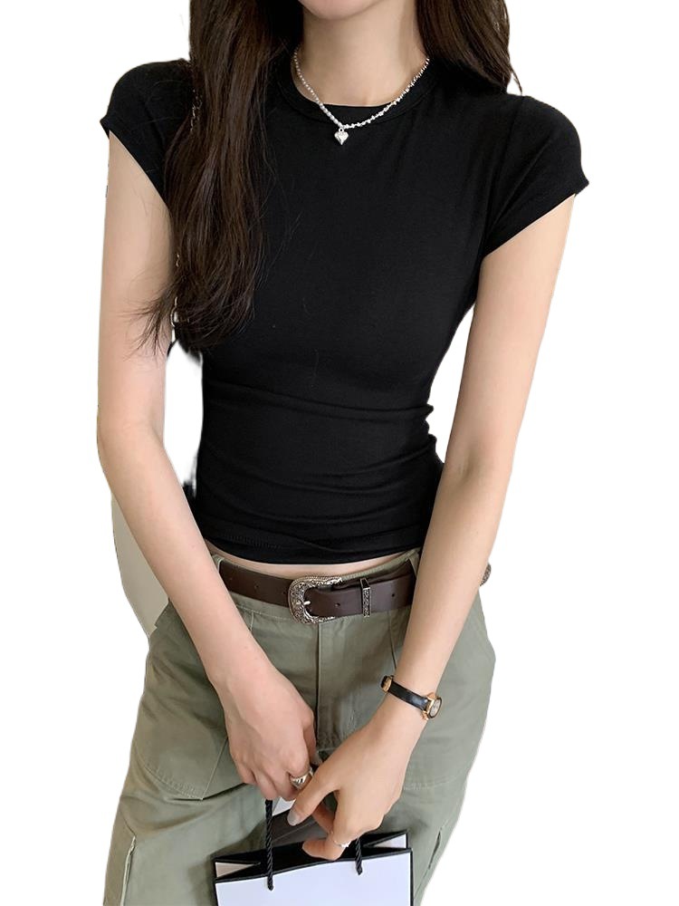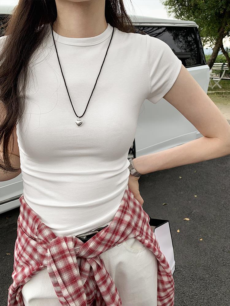 | nameOriginal | T American Style Spice Girl Crewneck Simple Slim-fit Short T-shirt Women's Basic Commuting All-match Short Sleeve Base Inner Top |