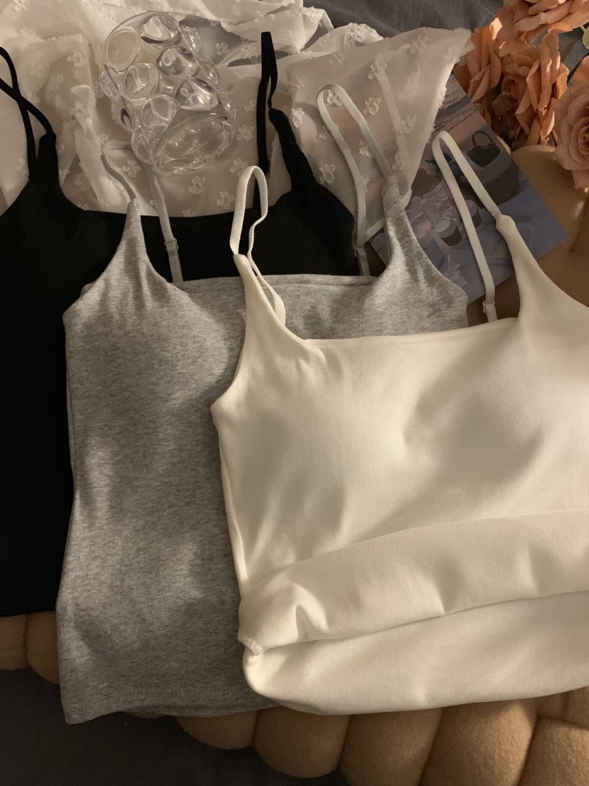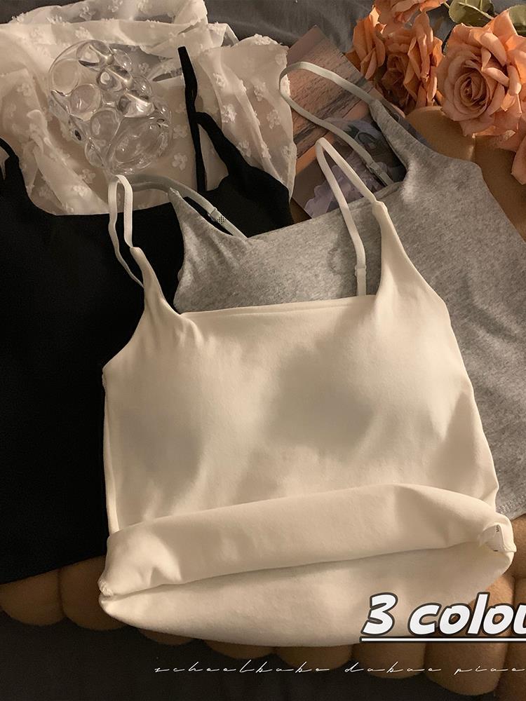 T Black White Small Camisole Vest with Chest Pad Women’s 2024 Summer New Grey Inner and Outer Wear Beautiful Back Top