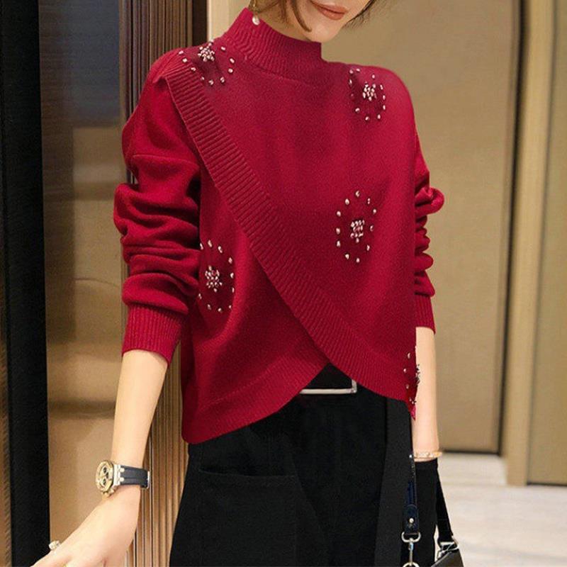 T Counter Shopping Mall Withdraws First-Line Export Cut Label, Remnant Single Tail Single Women’s Wear Red Design Foreign-style Sweater Knitted