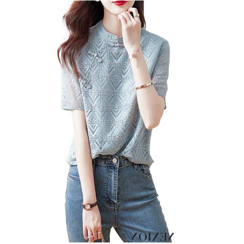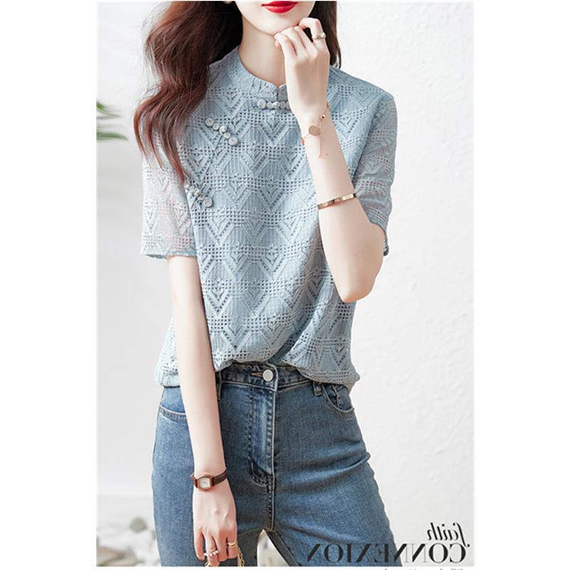 | nameOriginal | T Counter Shopping Mall Withdraws First Line Export Cut Label Tail List Retro Cheongsam Buckle Short Sleeve Shirt Lace Jacquard Top |