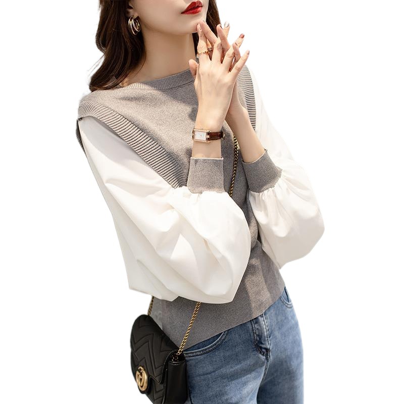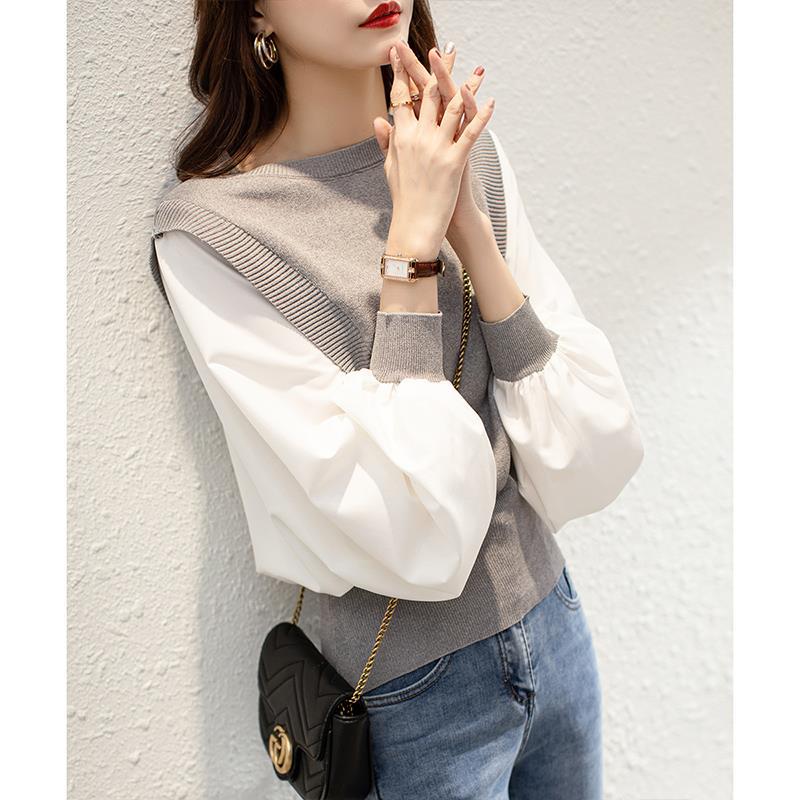 | nameOriginal | T Counter Shopping Mall Withdraws First-Line Export Cut Label, Yu Single Tail Single Women's Fake Two-Piece Crewneck Bat Sleeve Knitwear |