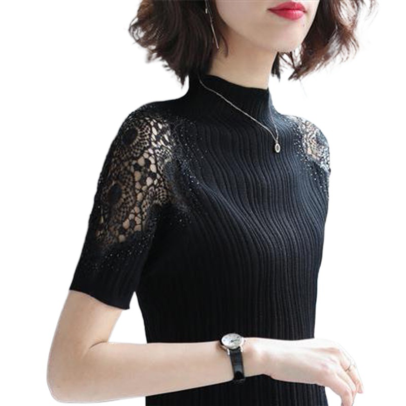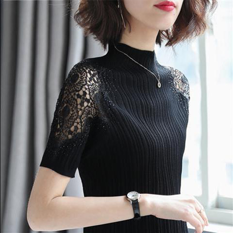 | nameOriginal | T Counter Shopping Mall Withdraws First-Line Export Cut-off Tail Sheet Women's Black Stitching Lace Short-sleeved Knit Sweater Design |