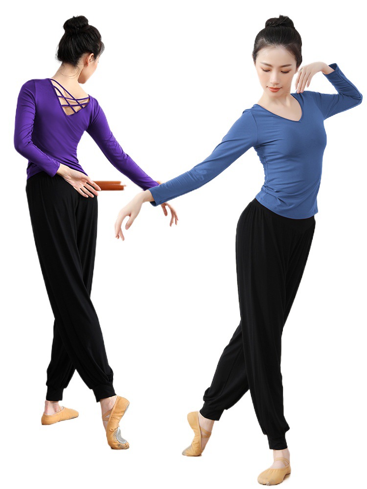 T Dance Pants Women's Practice Lantern Modal Top Dance Clothes Practice Clothes Classical Radish Chinese Dance Black Summer