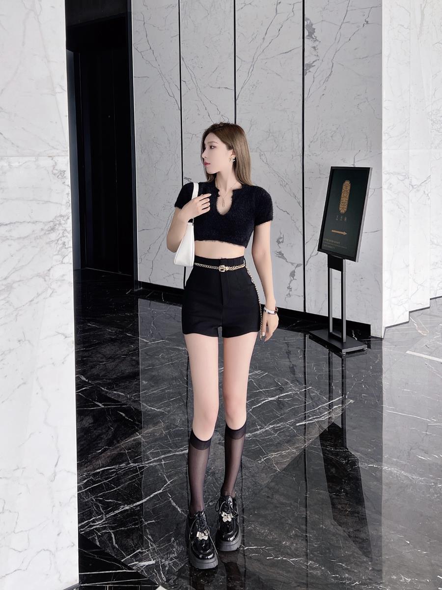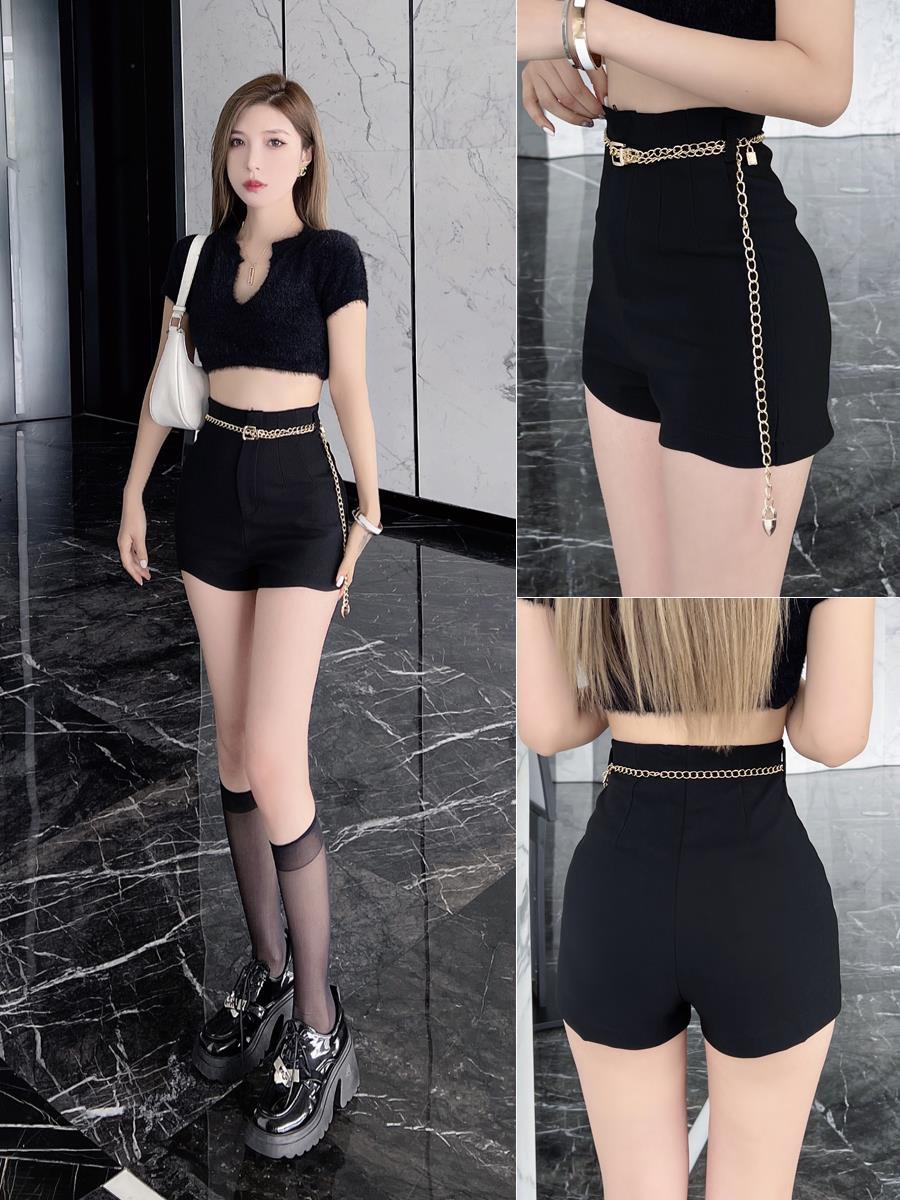 | nameOriginal | T Design Sense Chain Summer Black Stretch High Waist Shorts Women's Tight 2024 All-match Slimming Korean Style Wide Leg Hot |