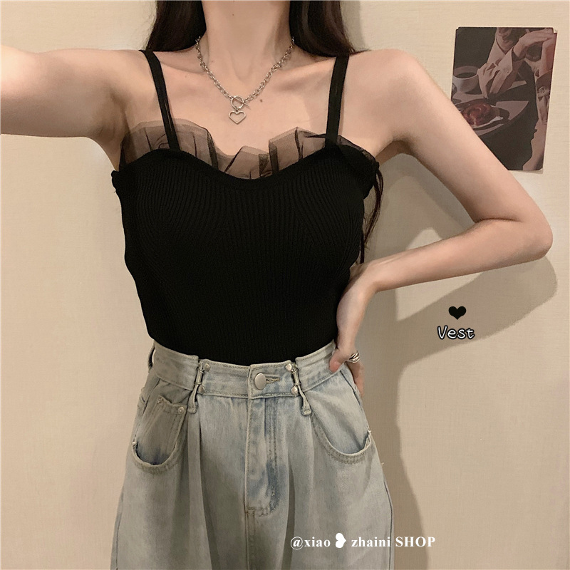 | nameOriginal | T French Style Black Chic Small Camisole Vest Women's Summer 2024 New Outer Wear Base Shirt Spice Girls Inner Wear |