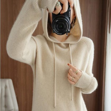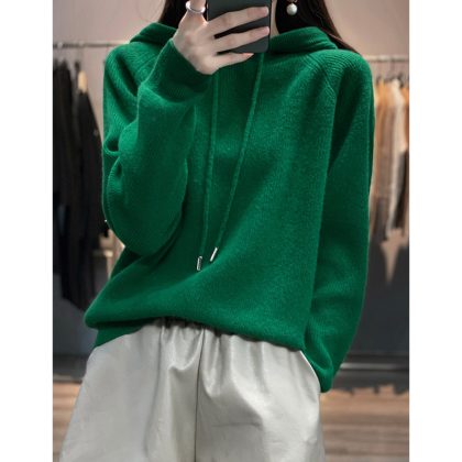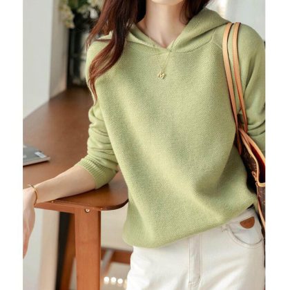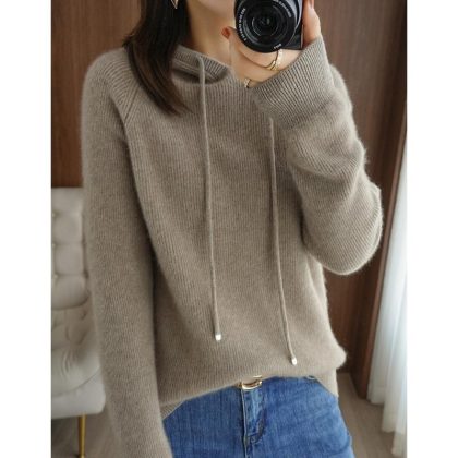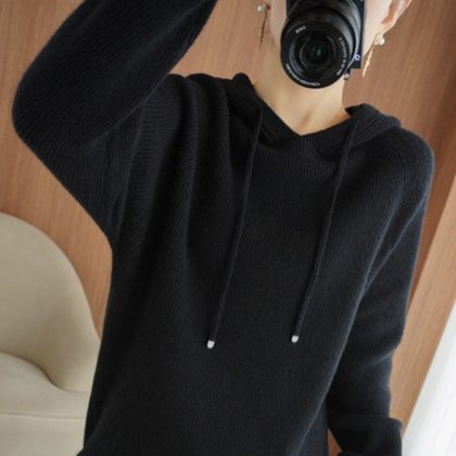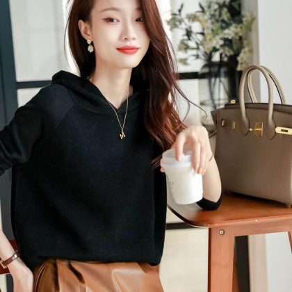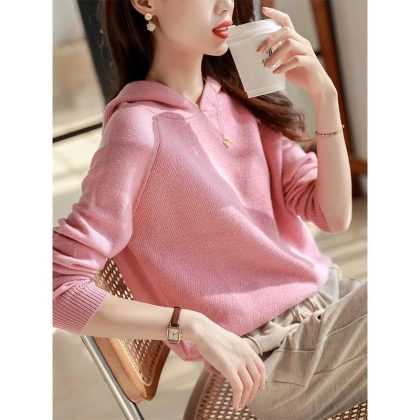 | nameOriginal | T Gentle Elegant Hooded Knitted Soft Waxy Sweater Top Women's Autumn and Winter New Loose Casual All-match Outer Wear Sweater |