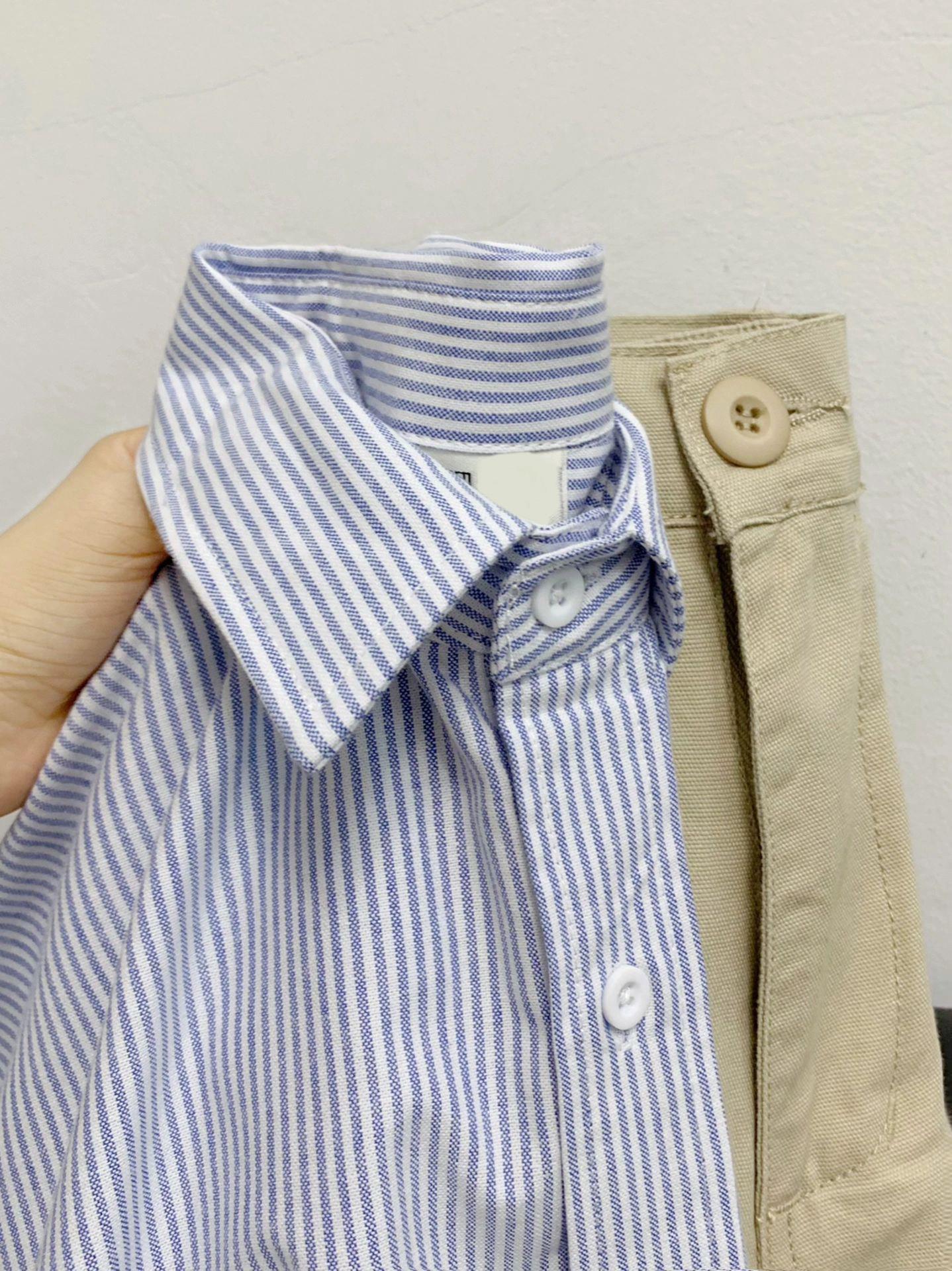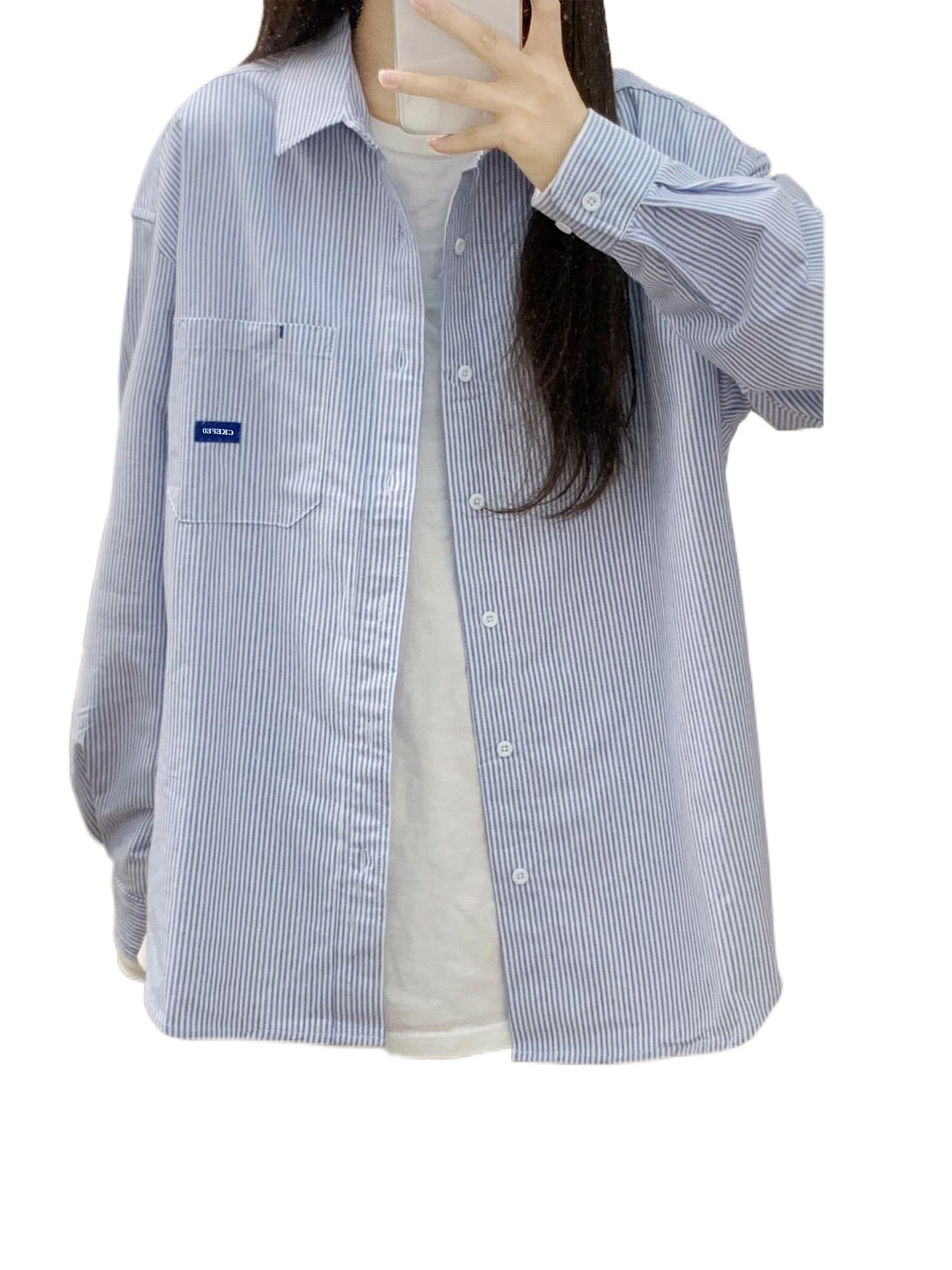 | nameOriginal | T Korean style small blue loose striped shirt women's spring inner base shirt niche stacked jacket |