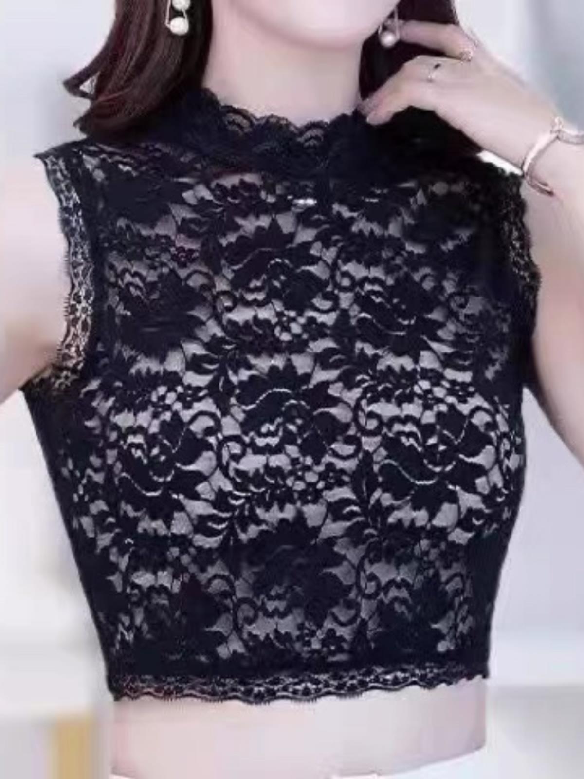 | nameOriginal | T Lace Base Shirt False Collar Women's All-match Half-turtleneck Sleeveless Hollow Sexy Short Inner Vest Outer Wear |
