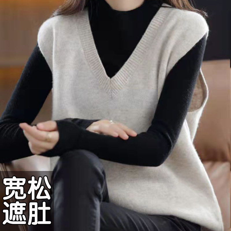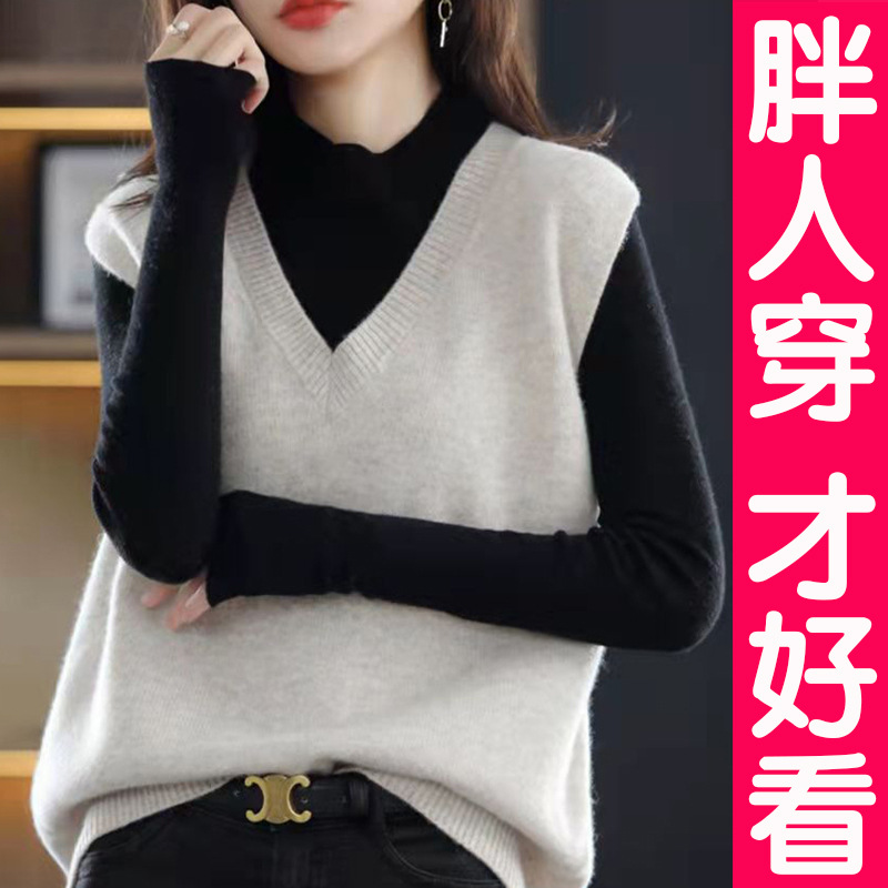 | nameOriginal | T Large Size V-neck Knitted Vest Women's Loose Waistcoat Sweater Wool Vest Sleeveless Top for Chubby Girls Spring Autumn Winter |