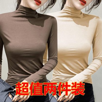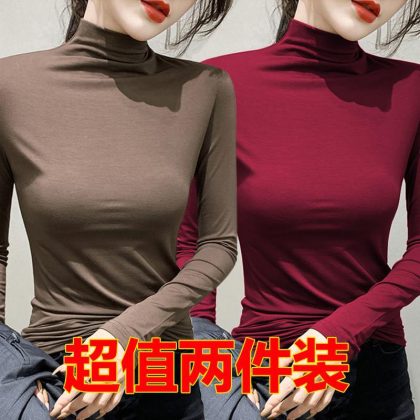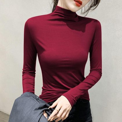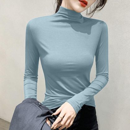 T Modal Half-high Collar Base Shirt Women’s 2023 New Slim-fit Solid Color Long-sleeved T-shirt Women’s Top Thin