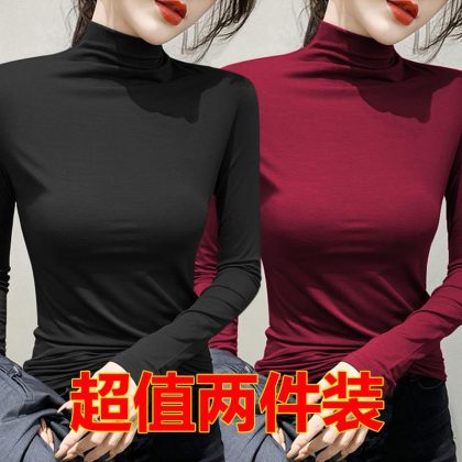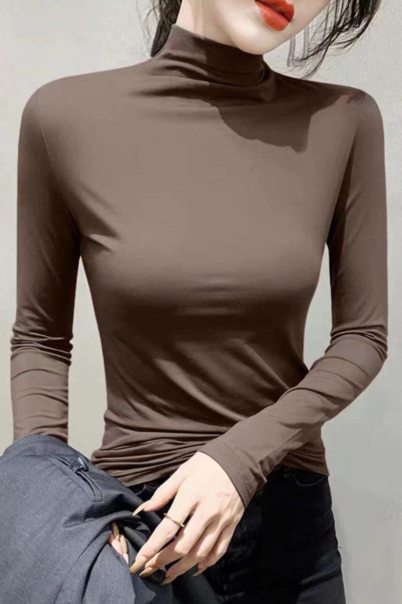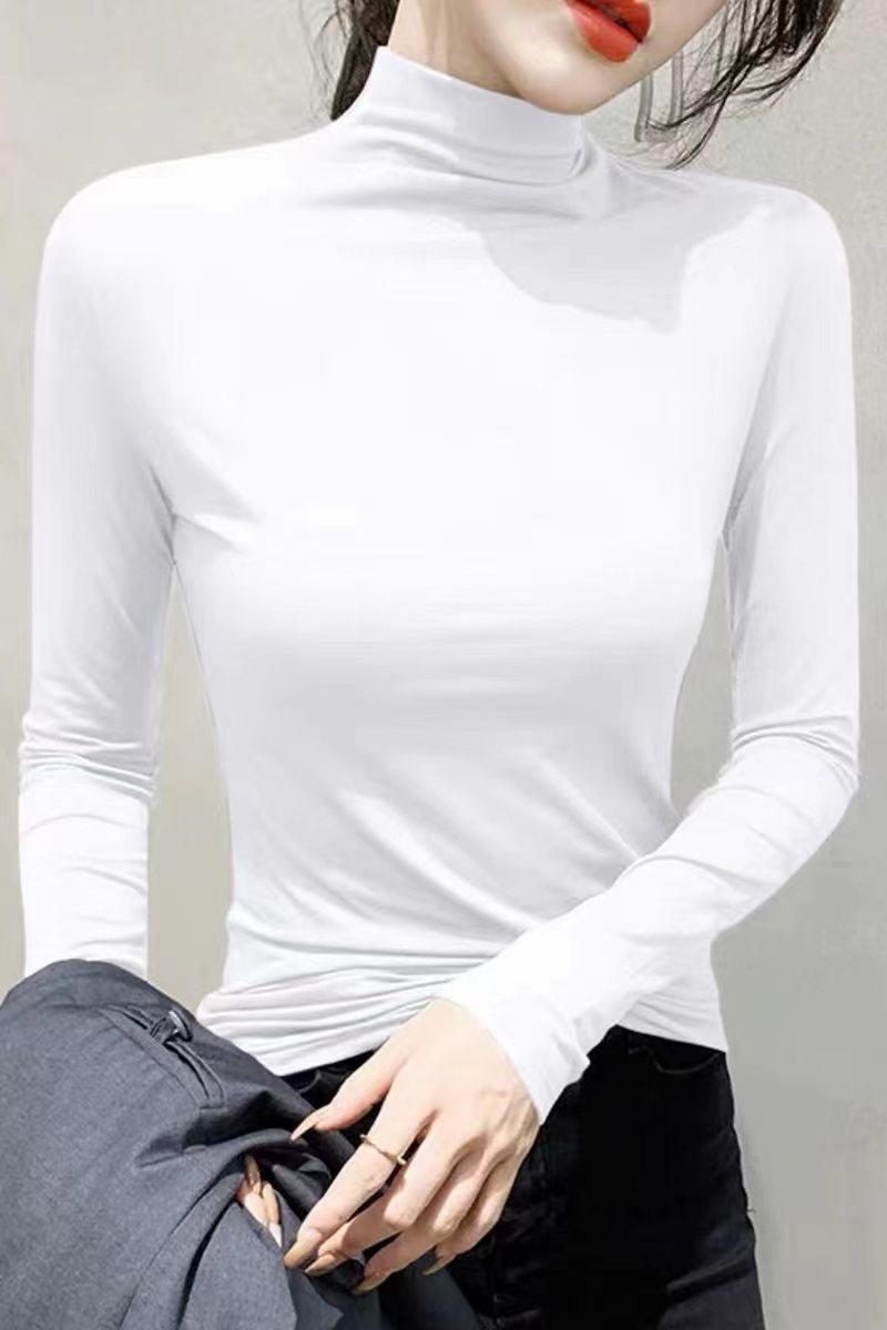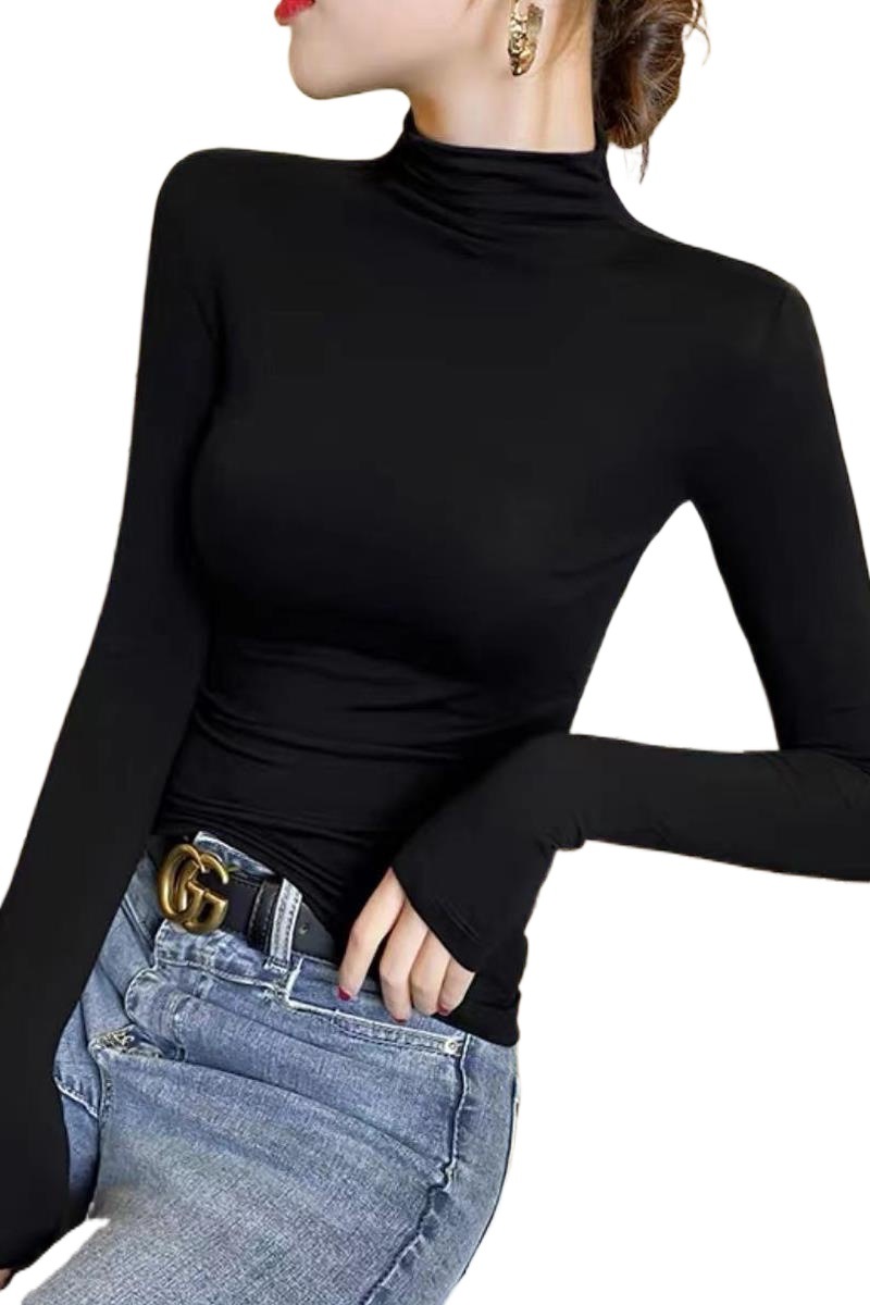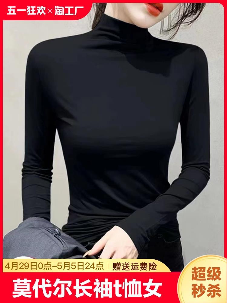 T Modal Half-high Collar Base Shirt Women's 2023 New Slim-fit Solid Color Long-sleeved T-shirt Women's Top Thin