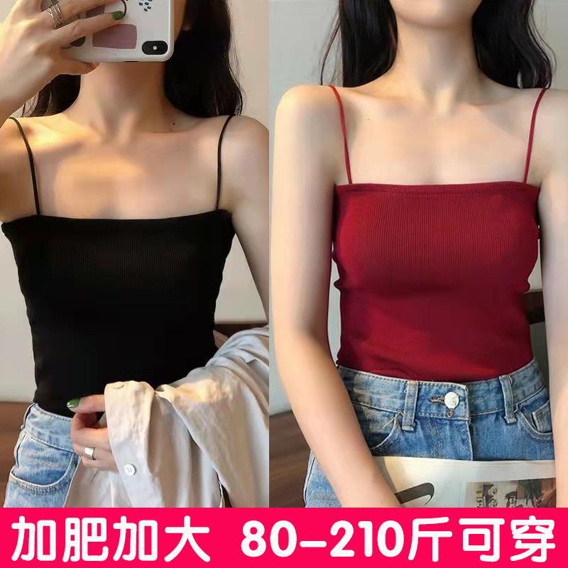 T plus size Camisole Women’s Inner Wear Outer Wear Summer Sleeveless Top chubby girl Plus Fertilizer Plus Knitted Ice Silk Base