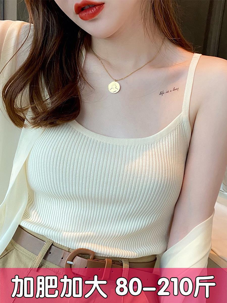 T plus size Ice Silk Camisole Women's Inner Wear Outer Wear Chubby Sister White Knitted Sleeveless Top Base Shirt chubby girl
