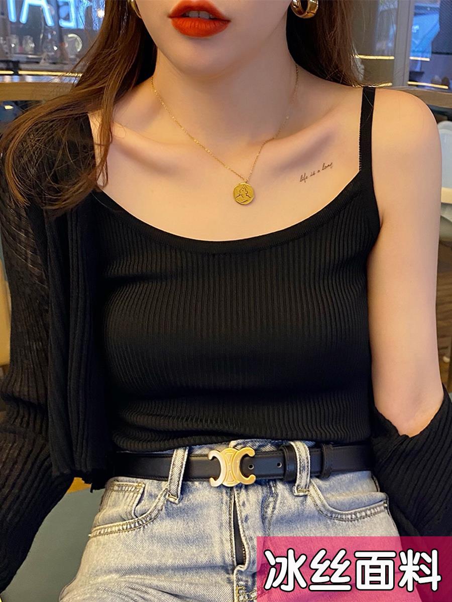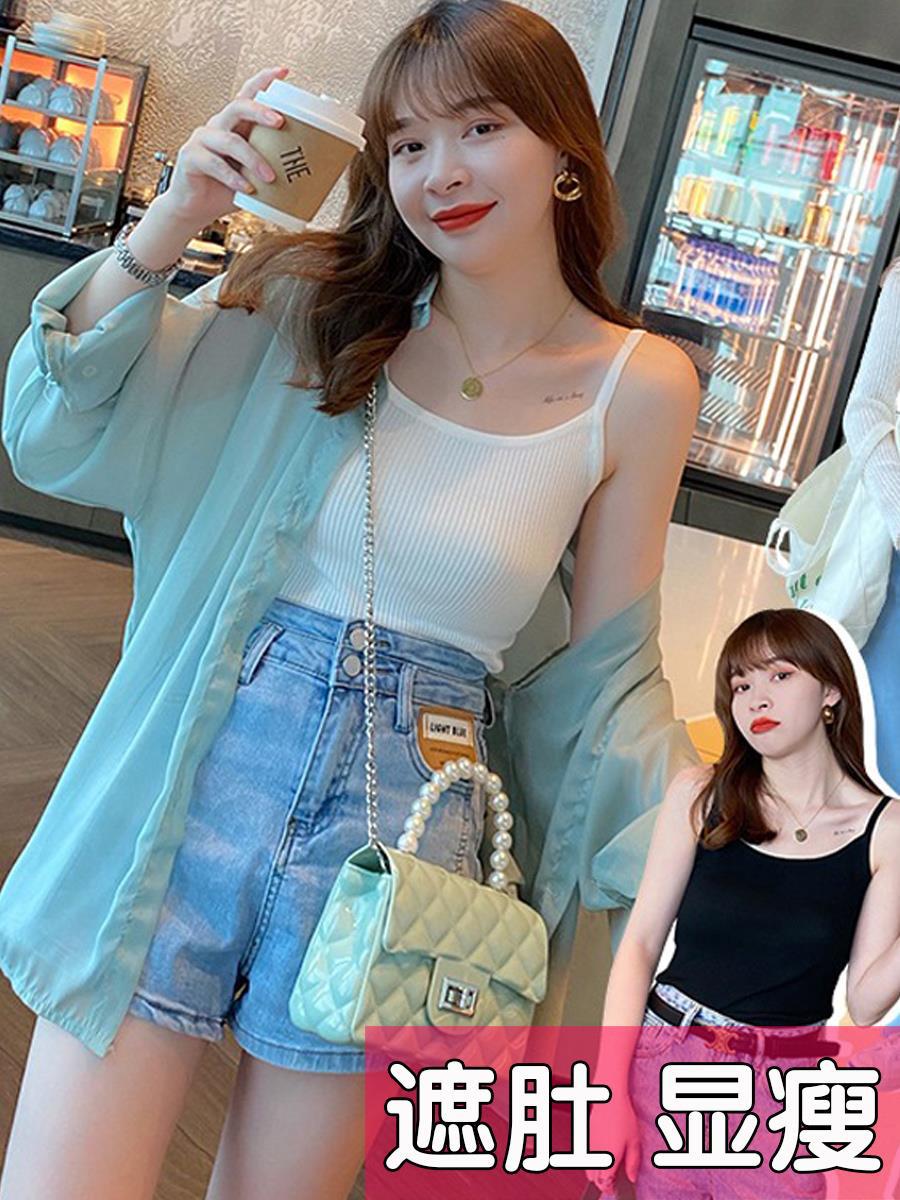 T plus size Ice Silk Camisole Women’s Inner Wear Outer Wear Chubby Sister White Knitted Sleeveless Top Base Shirt chubby girl