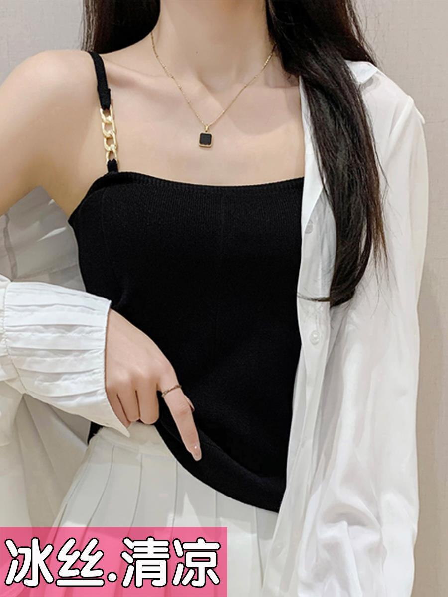 | nameOriginal | T plus size Ice Silk Camisole Women's Summer Wear Black Sleeveless Knitted Base Shirt Belly Covering Top Fat M |
