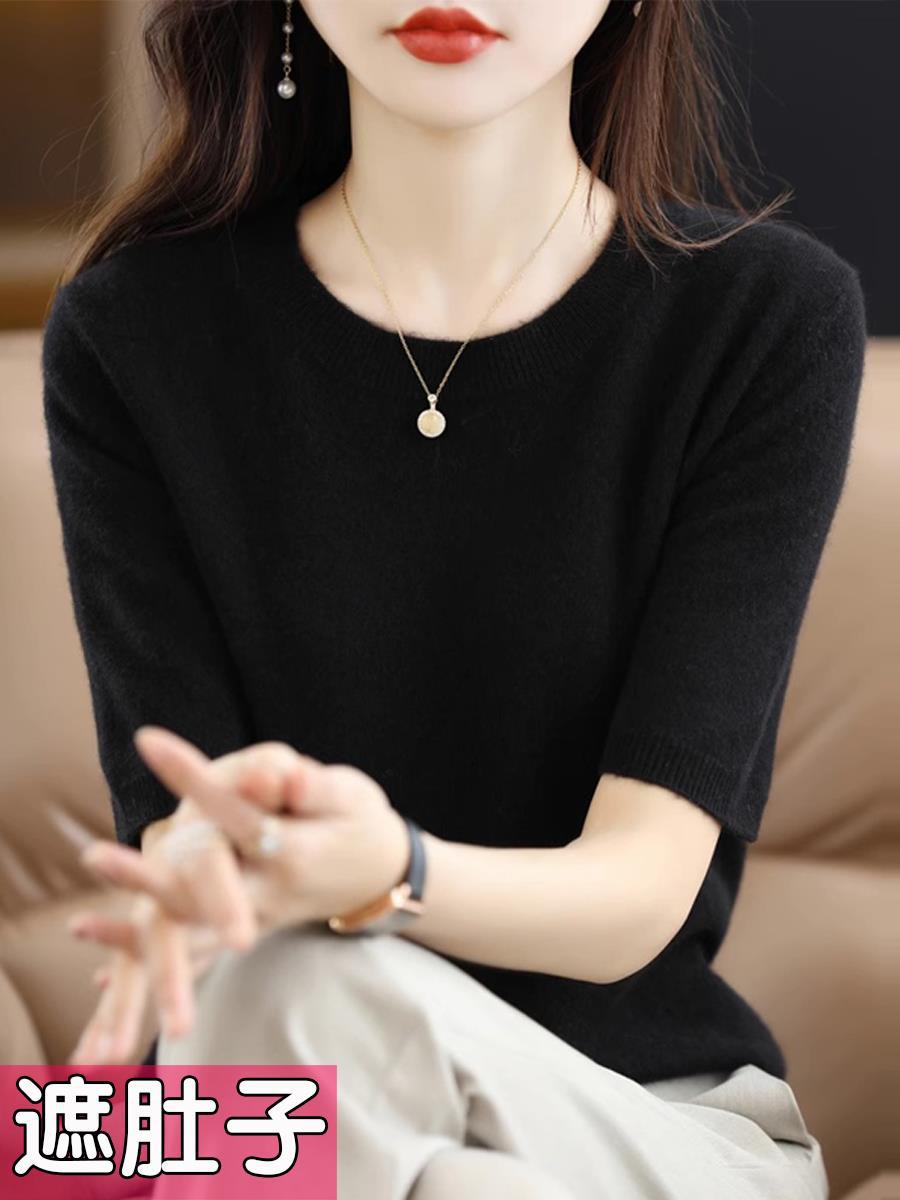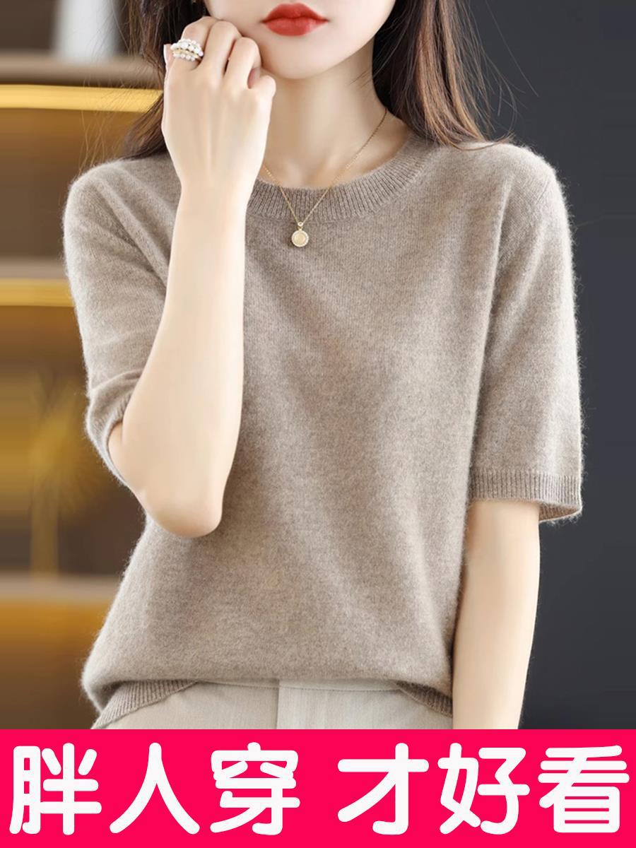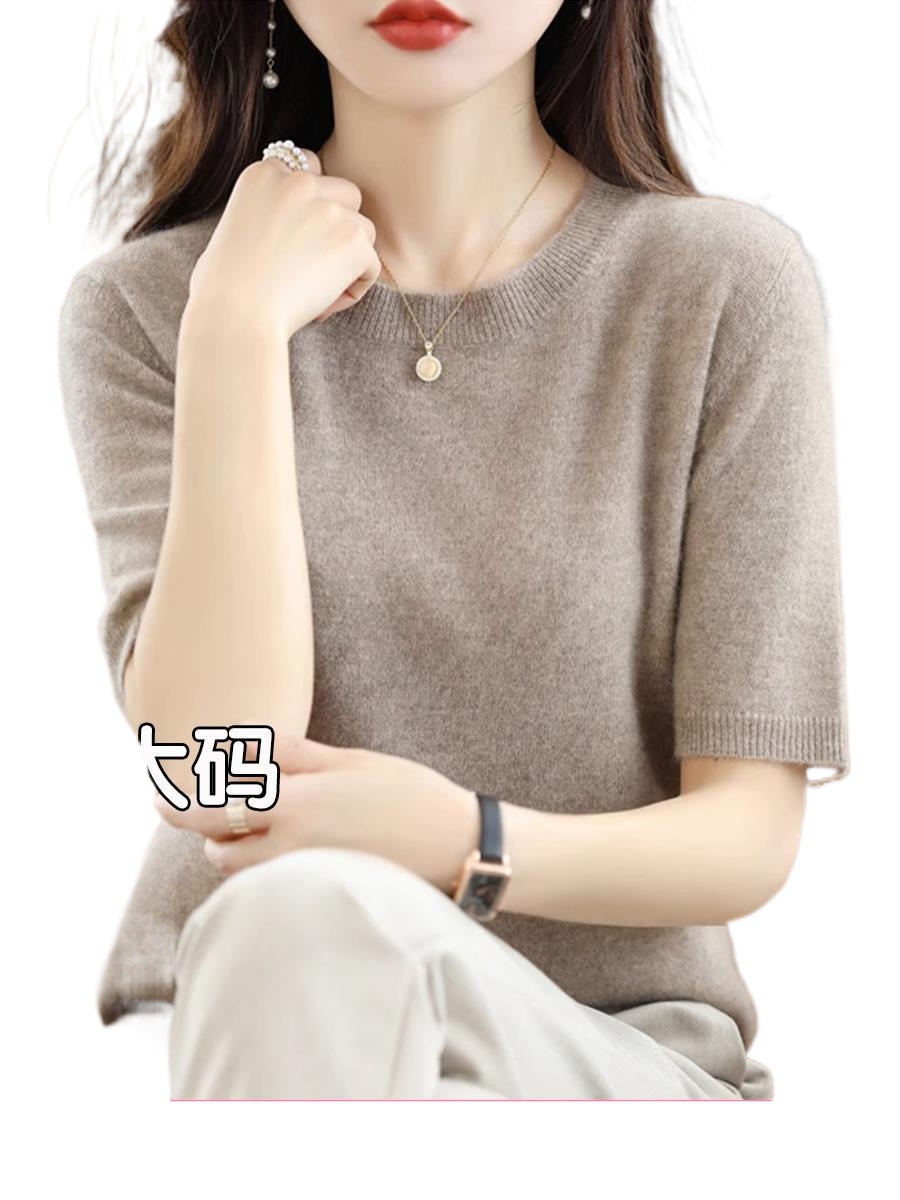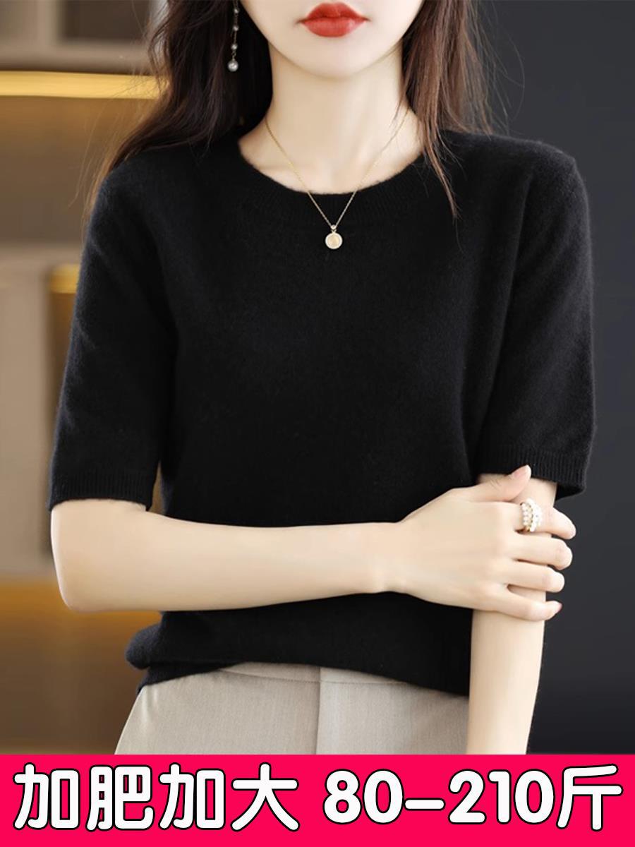 | nameOriginal | T plus size Knitted Shirt Women's Short Sleeve Crewneck Top chubby girl Half Sleeve Base Shirt Sweater Middle Sleeve Loose 200 Jin Spring |