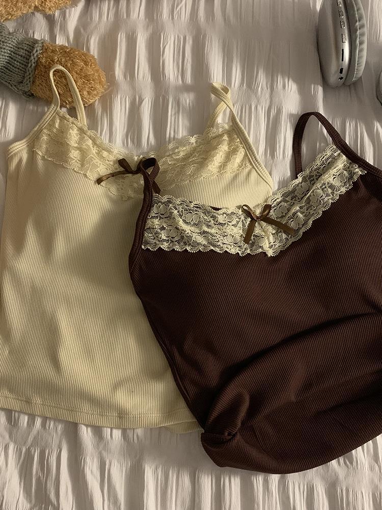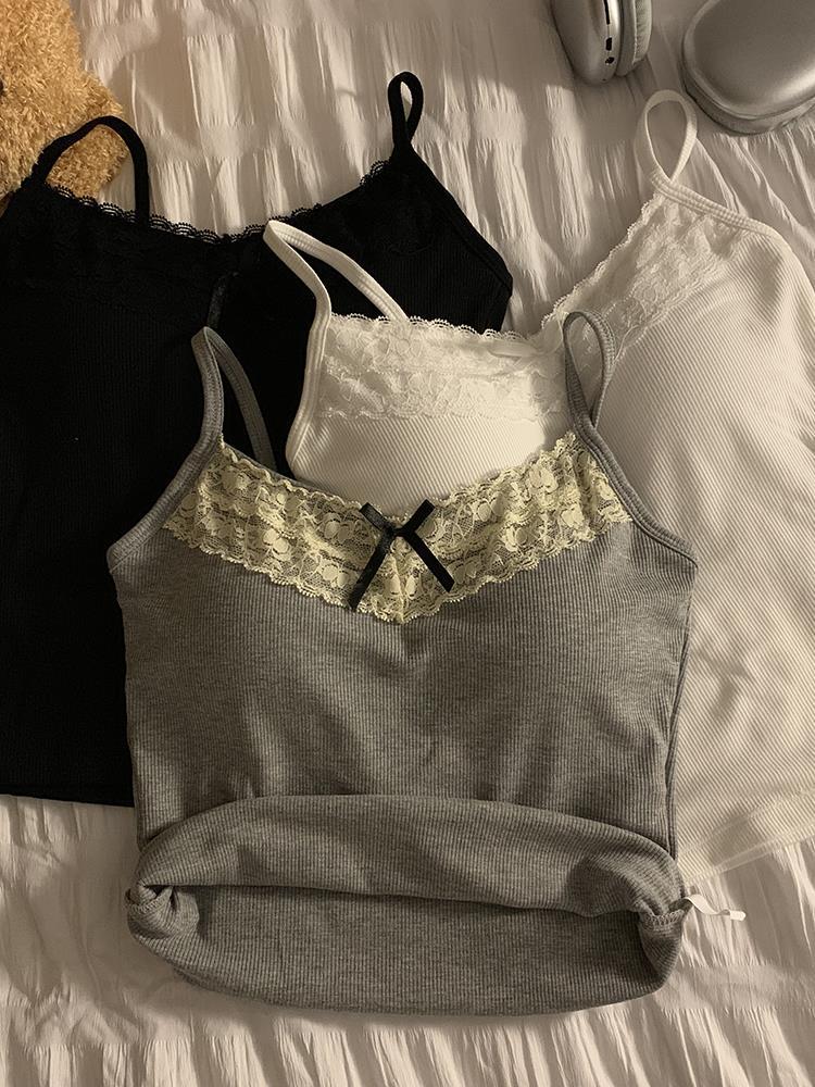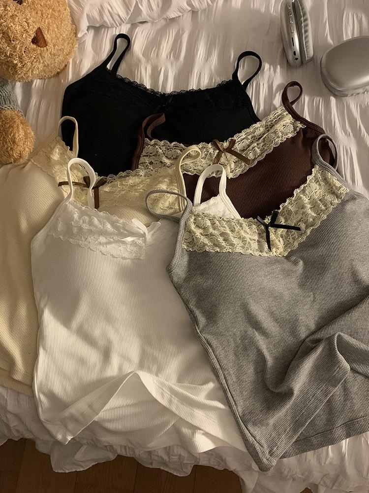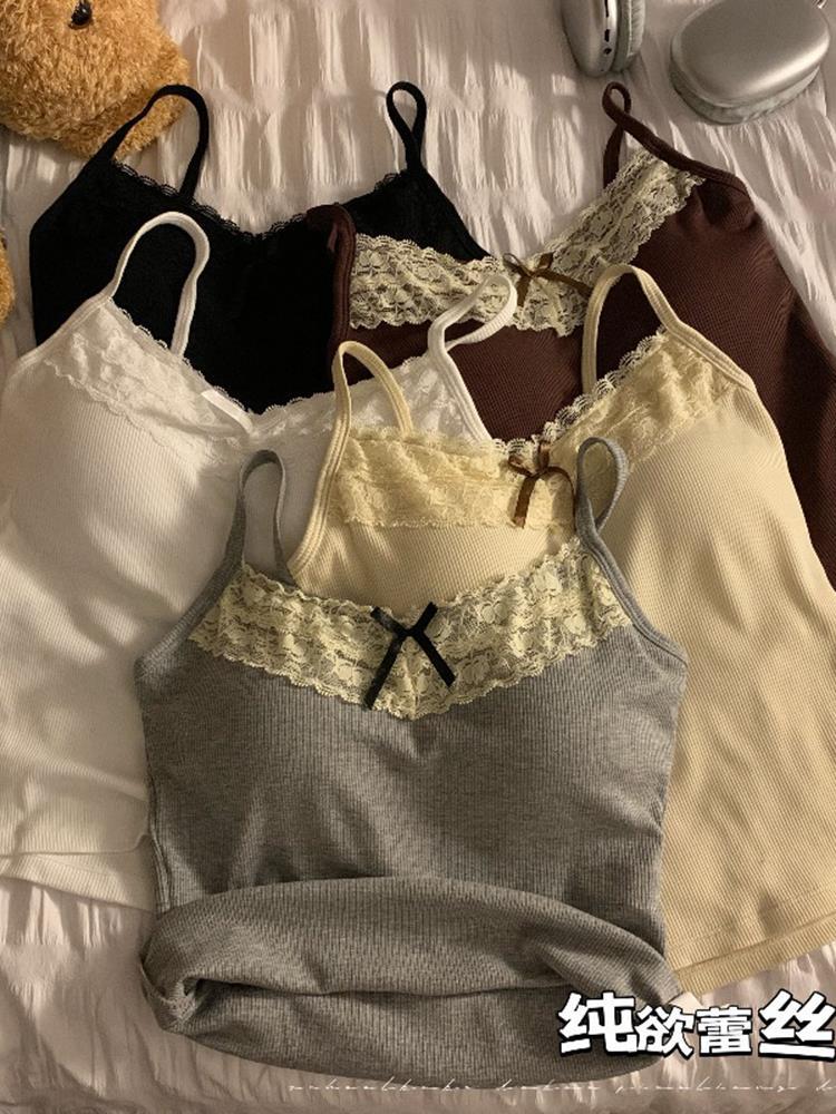 | nameOriginal | T Pure Desire Lace White Bow Small Camisole Women's Beautiful Inner Wearing Outer Wearing Base French Top with Chest Pad |